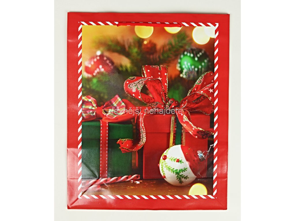 papírová taška s vánočním motivem z kvalitního a pevného papíru a nylonová ucha.