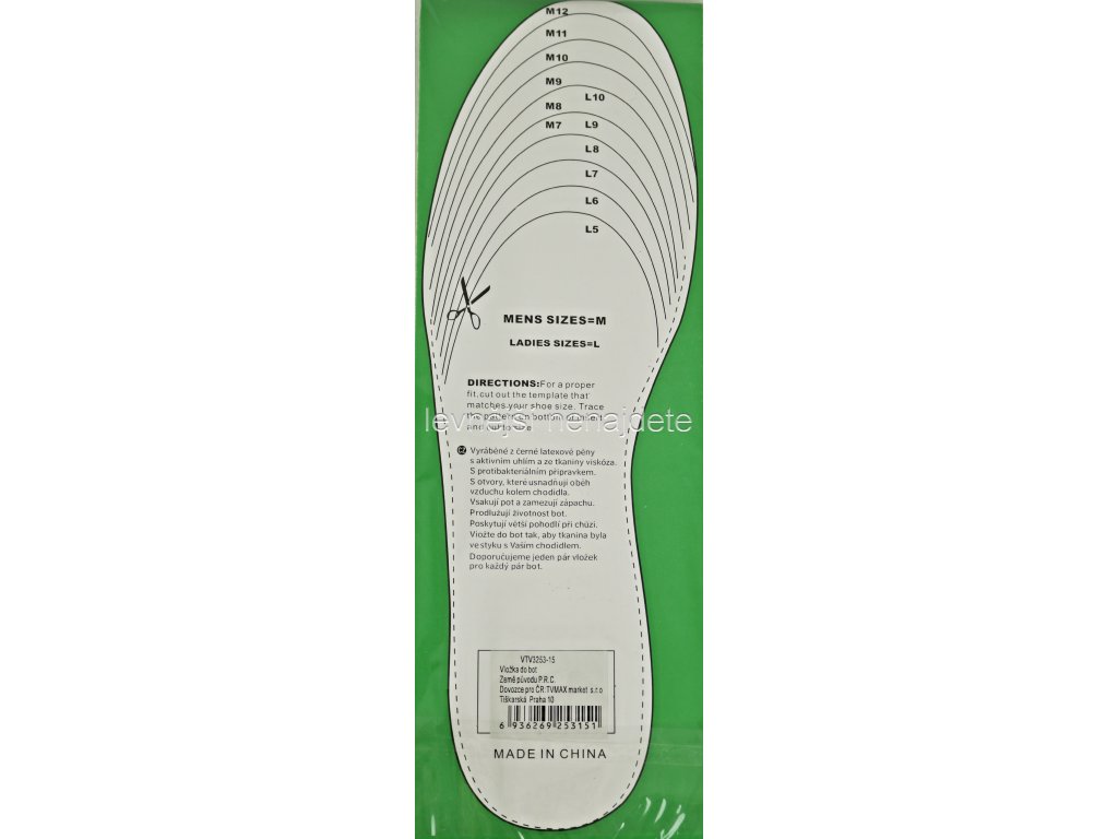 Stélka může být přizpůsobena do požadované velikosti zastřižením dle přiložené šabloně.
